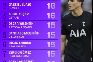 数据机构公布九月份铲球榜:帕利尼亚17次居首,苏亚佐16次居次席
