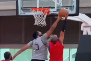 体育资讯10月2日讯 独行侠开启新赛季训练营,浓眉在训练中送出遮天大帽。