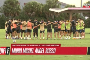 阿根廷队正在迈阿密备战友谊赛,球队在训练场上进行默哀仪式,以悼念去世的鲁索。