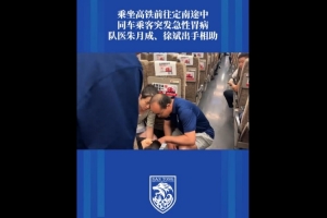 乘坐高铁前往定南客场途中,同车乘客突发急性胃病,南通支云一线队队医朱月成、徐斌出手相助。