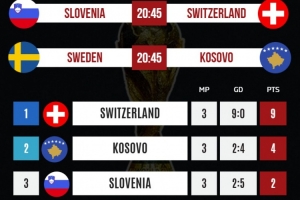 瑞士有望下周二晋级世界杯,只要战胜斯洛文尼亚且科索沃不胜瑞典