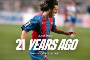 体育资讯10月16日讯 2004年的10月16日,梅西迎来巴萨一线队首秀,今日巴萨官推发文纪念了这一重大时刻。